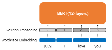 - BERT의 입력마다 다음과 같이 포지션 임베딩 벡터를 더해줌.